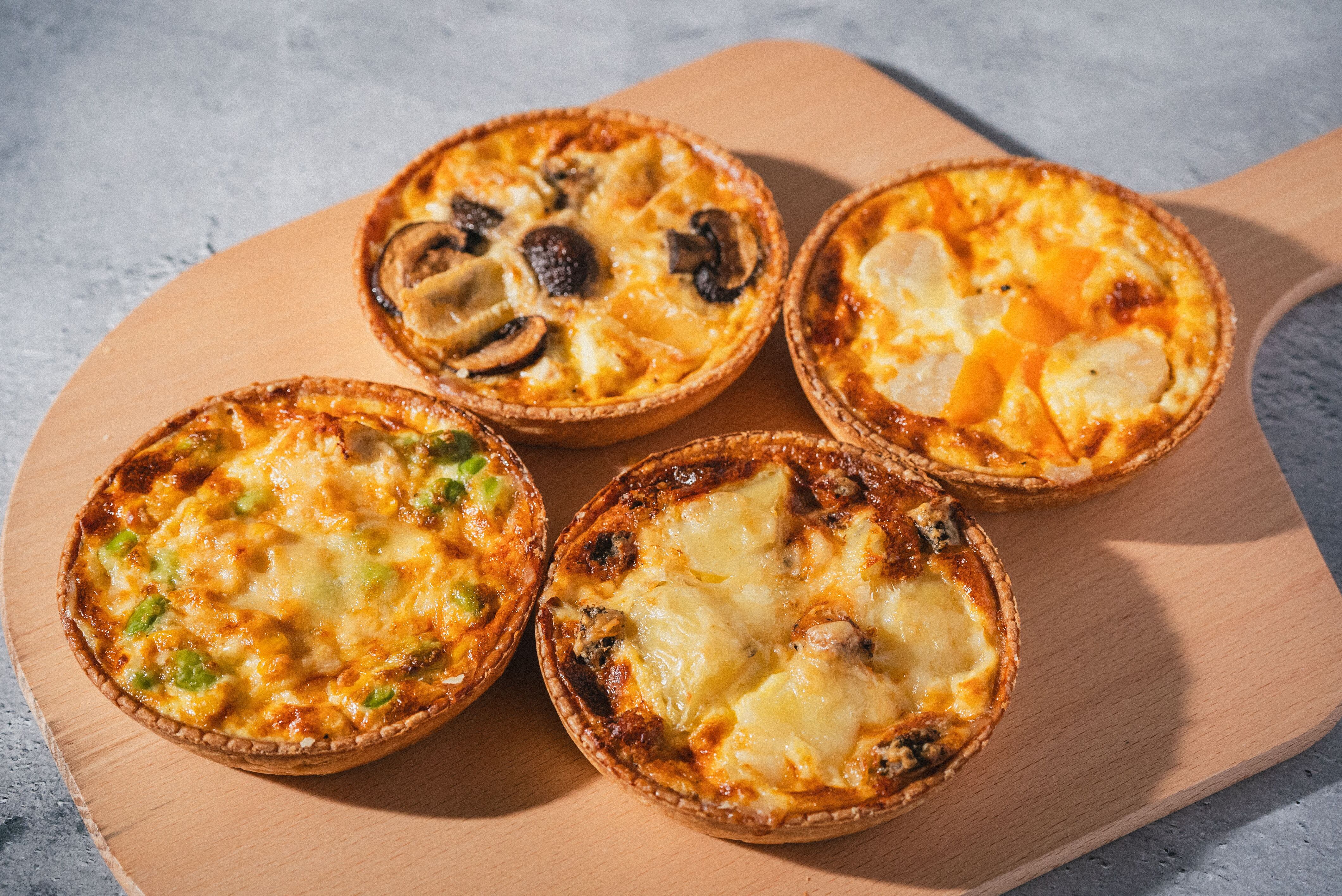 定番5種のキッシュ(12㎝)をお得なアソートセットにしました。(なかさつないキッシュ、とかちマッシュのキッシュ、椛とほたてのキッシュ、ブルーチーズとポテトのキッシュ、十勝若牛ボロネーゼのキッシュ 各1個)